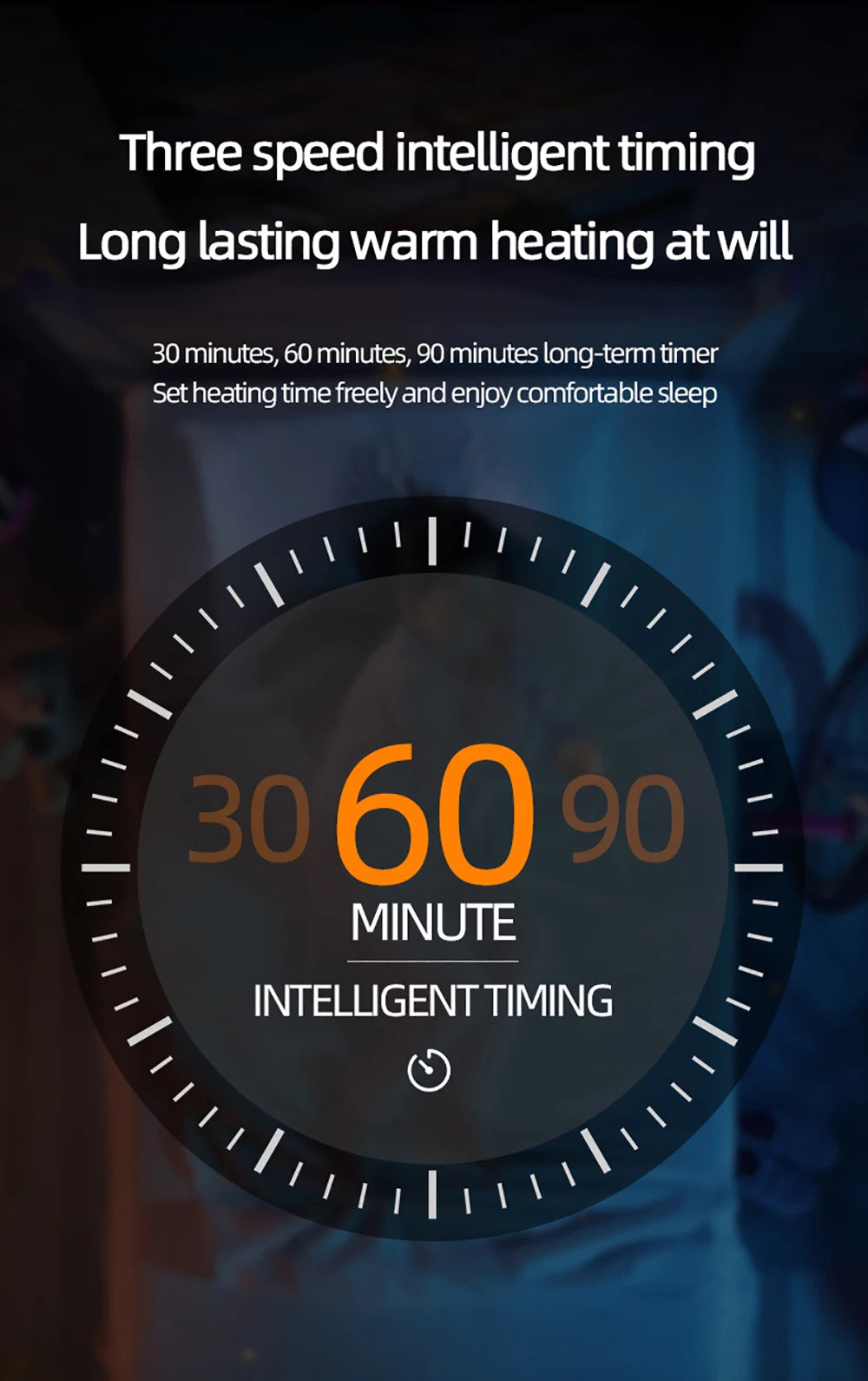 3. Three speed intelligent timing, 30minutes, 60minutes, 90minutes, long lasting warm heating at will.