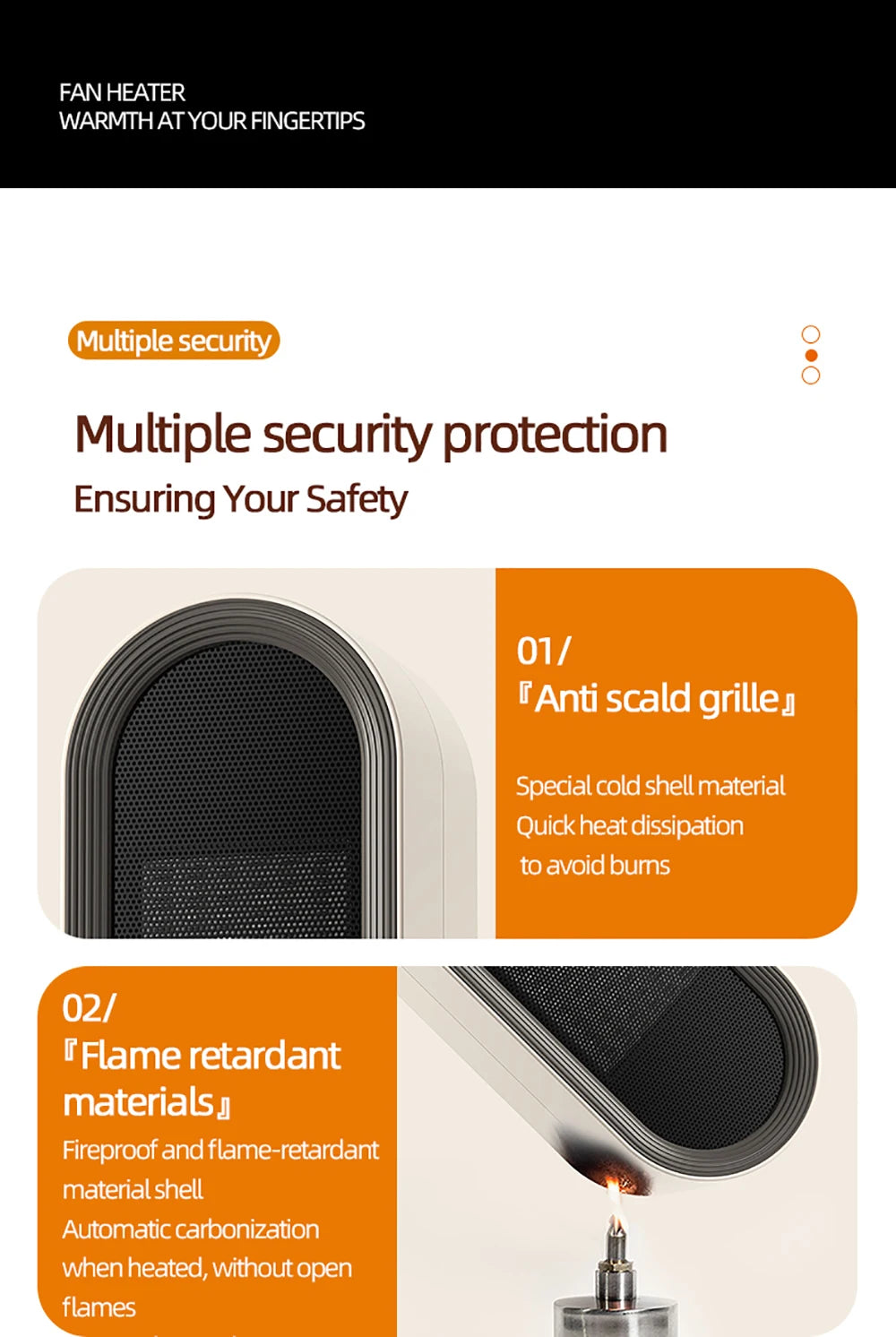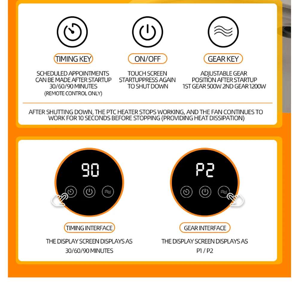 9. PTC ceramic 1200W fast heating, quick heating in 3 seconds.