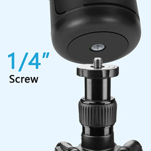 This device features a standard 1/4" screw thread at the bottom, allowing for easy mounting on a tripod and adjustable angle and height. You also have the option to attach a phone holder, GoPro mount, or most lightweight cameras for added versatility.
